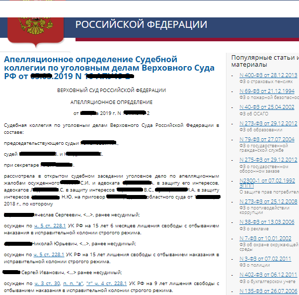 Кассационная инстанция по 228.1 части 3-4. Подготовка документов участи в кассационном суде 40.000 тыс.
